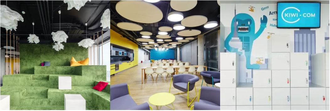 Naším prvním velkým projektem, který byl takto multifunkční, byly brněnské kanceláře letenkového startupu Kiwi.com. Na míru jsme zde navrhli nejen různá pracoviště, jako velký otevřený call-room, spletité prostory pro kreativní programátory nebo účelné reprezentativní místnosti pro vedení, ale i specializované výukové prostory, spací místnosti, wellness se saunou nebo kadeřnictví a firemní školku. Jednotlivé části pak byly organicky propojeny společnými jídelnami, relaxačními kouty a neformálními zasedačkami. Vytvořili jsme tak komplexní prostředí, ve kterém mohou zaměstnanci efektivně pracovat, vzájemně se potkávat nebo nerušeně odpočívat.